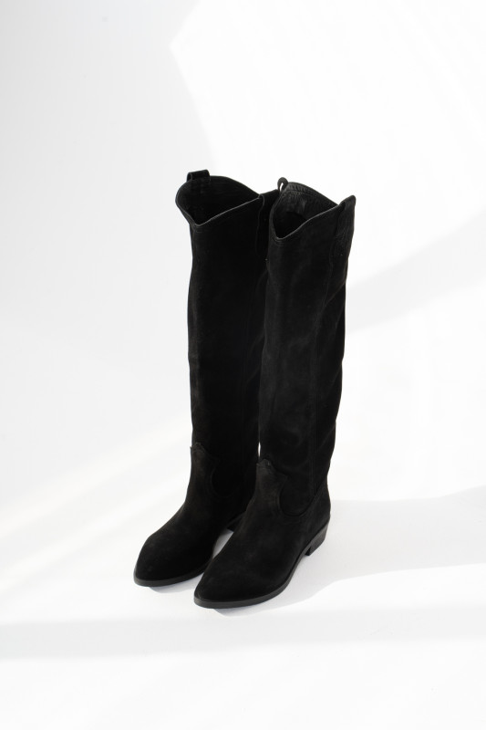 Dalla е класически модел високи ботуши от естествен набук, създадени за жени, които ценят минимализма и качеството. Изчистената линия, меката текстура и елегантният силует ги правят универсален избор за ежедневието – от градски разходки до по-елегантни визии. Лекото ходило осигурява комфорт през целия ден, а стабилната конструкция подчертава изисканата им визия. Изцяло черни, стилни и вечни – модел, който лесно се комбинира с всеки гардероб.