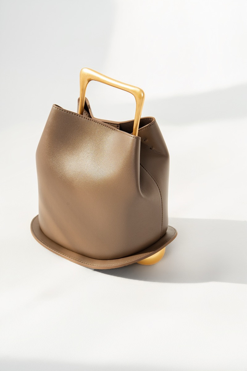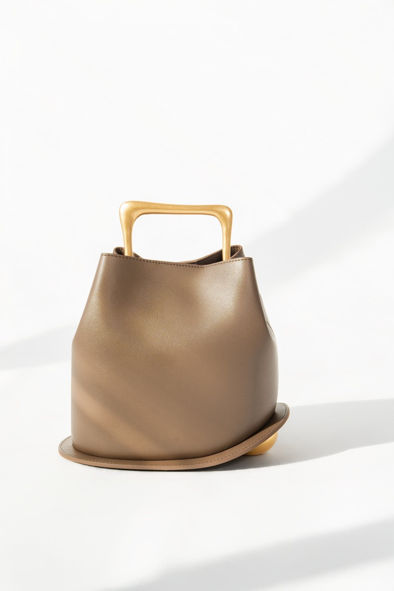 Taupe Éclat е изискана чанта от естествена кожа, съчетаваща луксозен минимализъм и артистичен дизайн. Моделът впечатлява с характерната си скулптурна форма, елегантна дръжка в златен тон и стабилна декоративна основа, която превръща аксесоара в истинско бижу. Меката, висококачествена естествена кожа в нюанс taupe придава дълбочина и модерност, а вниманието към детайла подчертава класа и прецизност. Перфектна за специални поводи и за стилни ежедневни визии, чантата е акцент, който носи увереност, финес и неподражаемо присъствие.