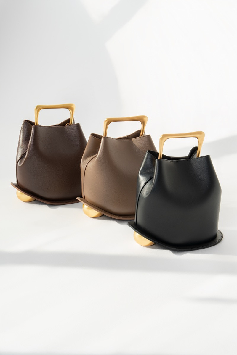 Black Éclat е изискана чанта от естествена кожа, съчетаваща луксозен минимализъм и артистичен дизайн. Моделът впечатлява с характерната си скулптурна форма, елегантна дръжка в златен тон и стабилна декоративна основа, която превръща аксесоара в истинско бижу. Меката, висококачествена естествена кожа в нюанс black придава дълбочина и модерност, а вниманието към детайла подчертава класа и прецизност. Перфектна за специални поводи и за стилни ежедневни визии, чантата е акцент, който носи увереност, финес и неподражаемо присъствие.