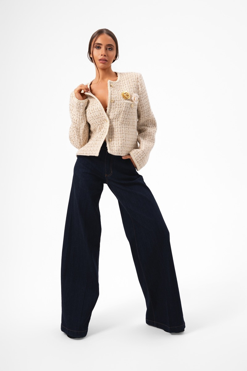Дънки с висока талия и свободна, разкроена кройка – съвременен силует с винтидж усещане. Изработени от плътен деним с дълбок индигов нюанс, те подчертават талията и издължават фигурата. Съчетавайки удобство и елегантност, моделът е идеален както за ежедневен стил, така и за по-смели градски визии.