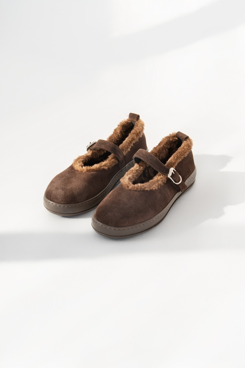 Превърнете всеки ден в уютно удоволствие с Furry Mary Jane Flats – модерната интерпретация на класическите Mary Jane обувки, създадена за топлина, комфорт и фин женствен акцент.Изработени от мек велур в наситен кафяв тон, те впечатляват с нежна вътрешна подплата от пух, която обгръща крака в топлина. Регулируемата каишка добавя стил и стабилност, а леката и гъвкава подметка осигурява приятно усещане при всяка стъпка.