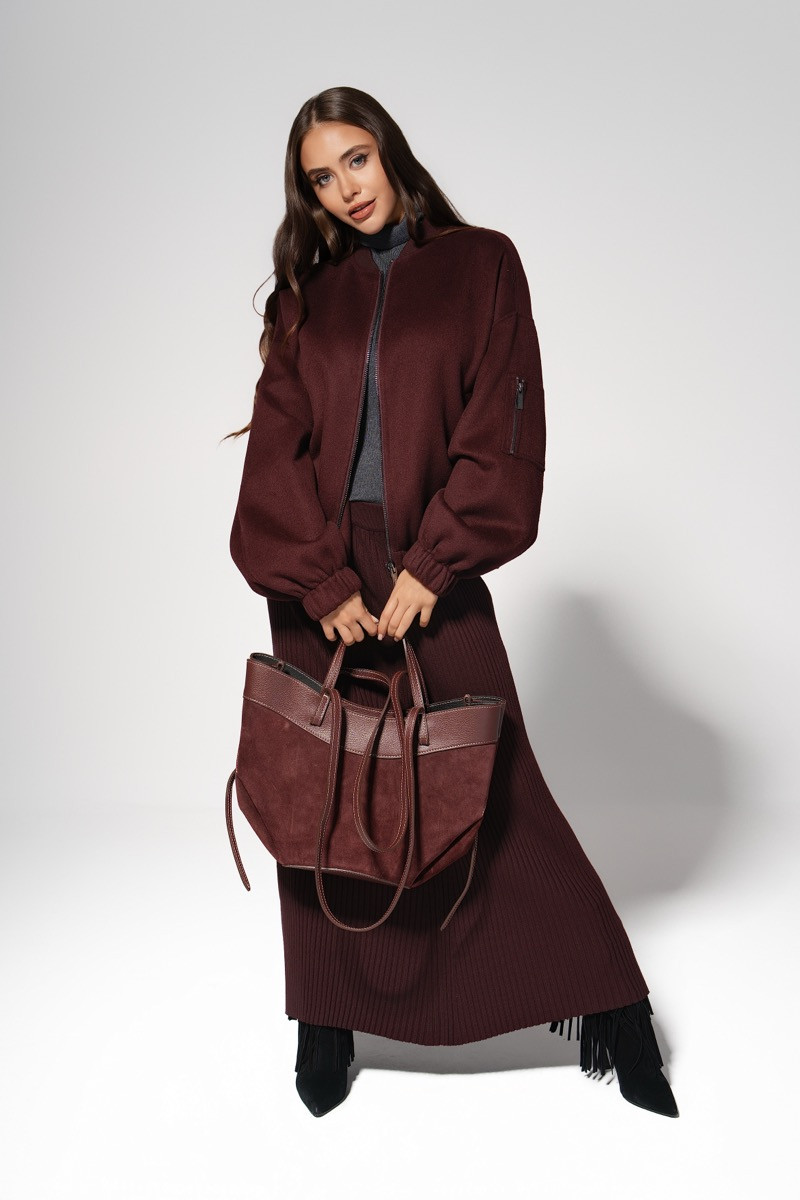 Paloma е модерно палто тип бомбър, което съчетава удобство, стил и оригинален силует. Изработено от висококачествена вълнена материя, то предлага топлина и мекота, идеални за прохладните дни. Свободната кройка с подчертани обеми при ръкавите създава съвременна визия, а ластичните маншети и долен подгъв добавят характер и комфорт при носене.Paloma е проектирано с практична предна ципова закопчалка и функционален джоб с цип на ръкава, който допринася за модерното градско излъчване. Моделът се комбинира прекрасно както с плетени комплекти, така и с деним или панталони, превръщайки го в универсална и стилна добавка към всеки гардероб.