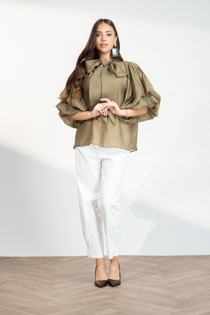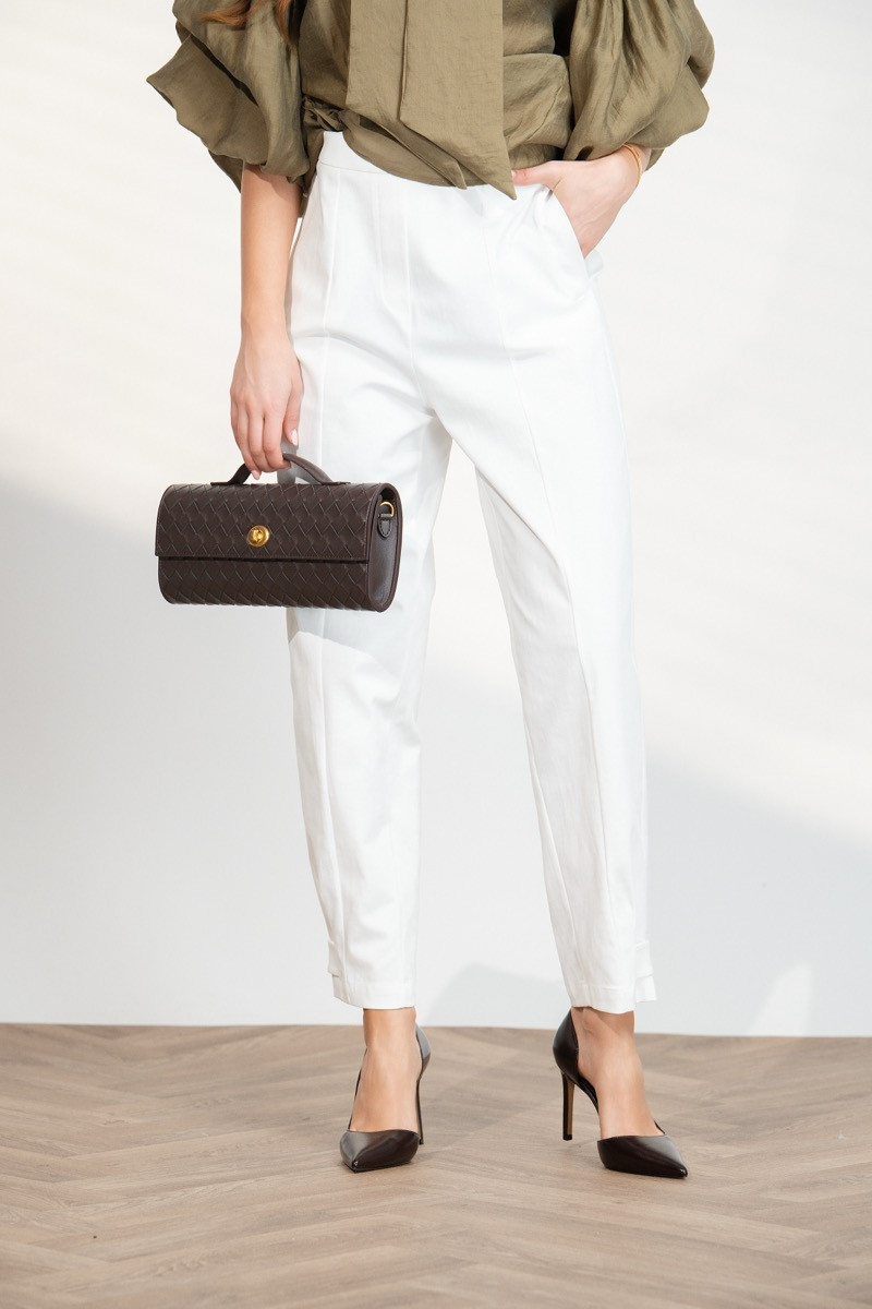 Елегантен дамски панталон с изчистена линия и модерна кройка, който подчертава силуета и осигурява комфорт през целия ден. Моделът е с висока талия и прави крачоли, които създават издължен и стилен силует. Белият цвят придава свежо и изискано излъчване, което позволява лесно комбиниране както с елегантни ризи и сака, така и с по-ежедневни топове за стилна визия.