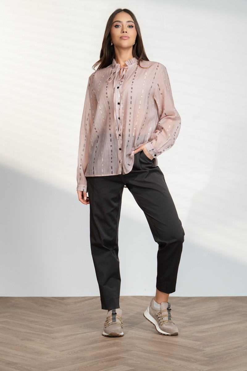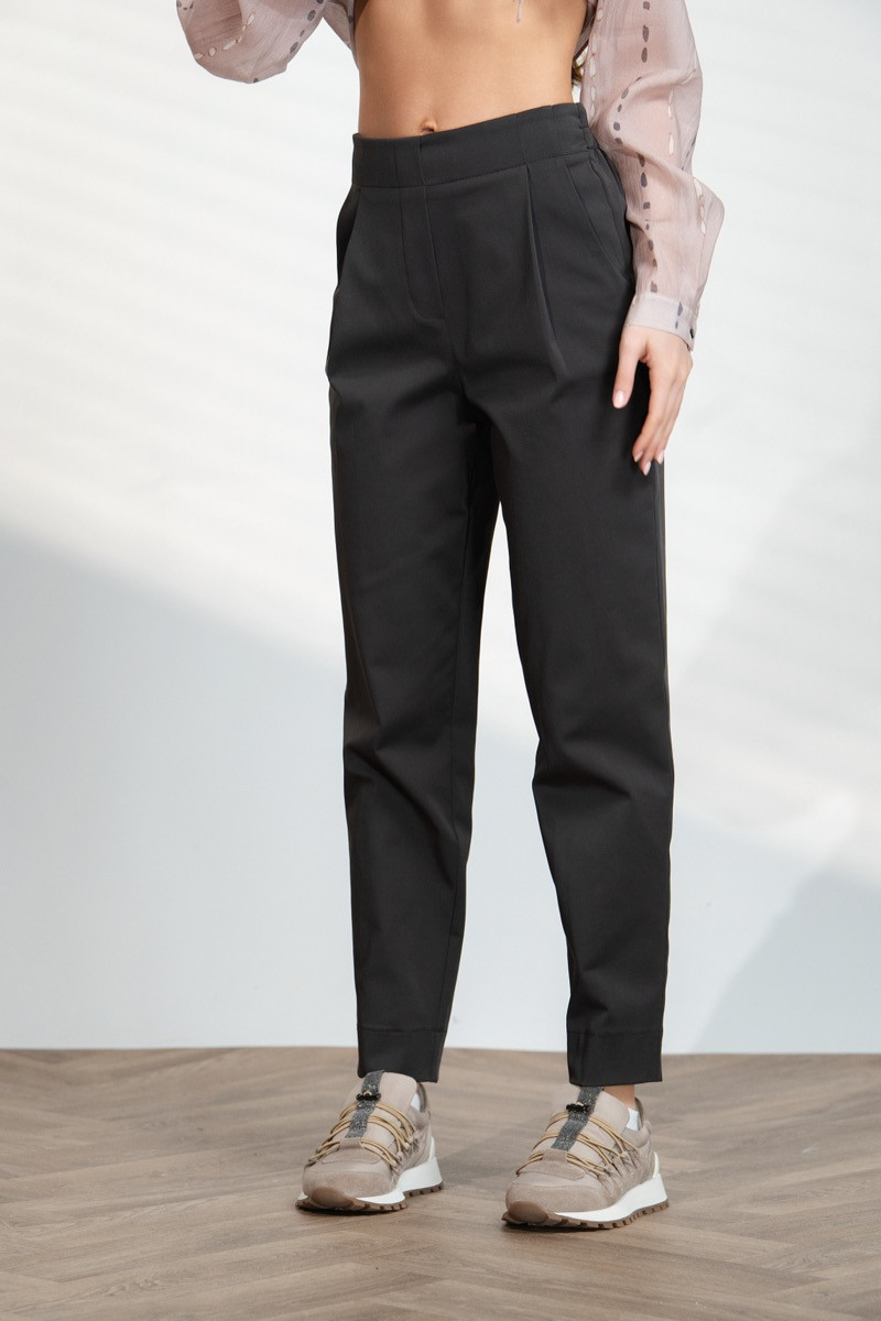 Елегантен дамски панталон с изчистена линия и модерна кройка, който подчертава силуета и създава стилна визия. Моделът е с висока талия и прави крачоли, които придават издължен и елегантен вид на фигурата. Тъмнокафявият цвят придава меко и изискано излъчване, което позволява лесно комбиниране както с ризи и блузи, така и със сака за стилна и модерна визия.