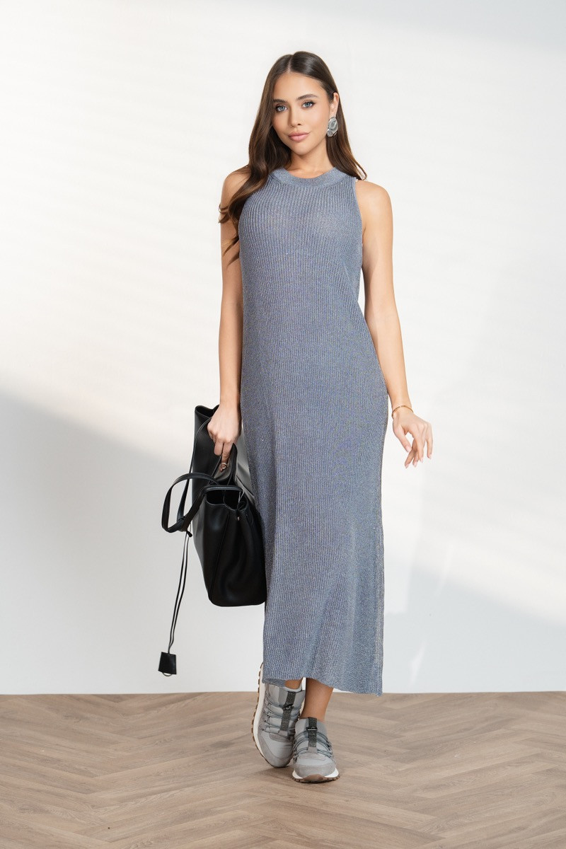 Елегантна плетена рокля с изчистен и модерен дизайн. Моделът е без ръкави и следва нежно линията на тялото, създавайки стилен и женствен силует. Фината плетена текстура придава усещане за комфорт и мекота, а дължината под коляното добавя елегантност към визията.Роклята е подходяща както за ежедневни визии, така и за по-елегантни комбинации. Може да се носи самостоятелно или да се комбинира с различни аксесоари за завършен стил.